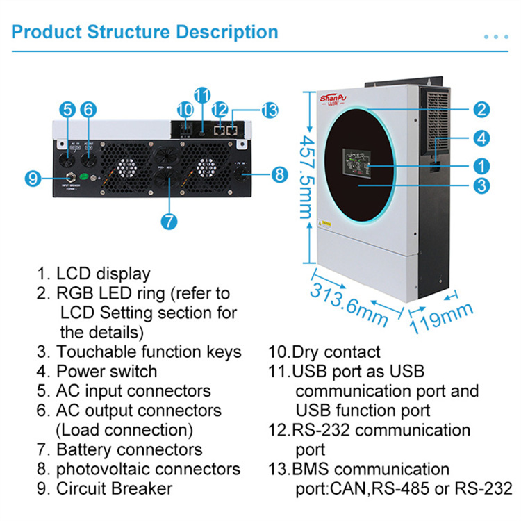 Factory 4KW 4KVA MPPT 120A 500VDC PV Input 230VAC 24V with Parallel Function 4000W Hybrid Solar inverter