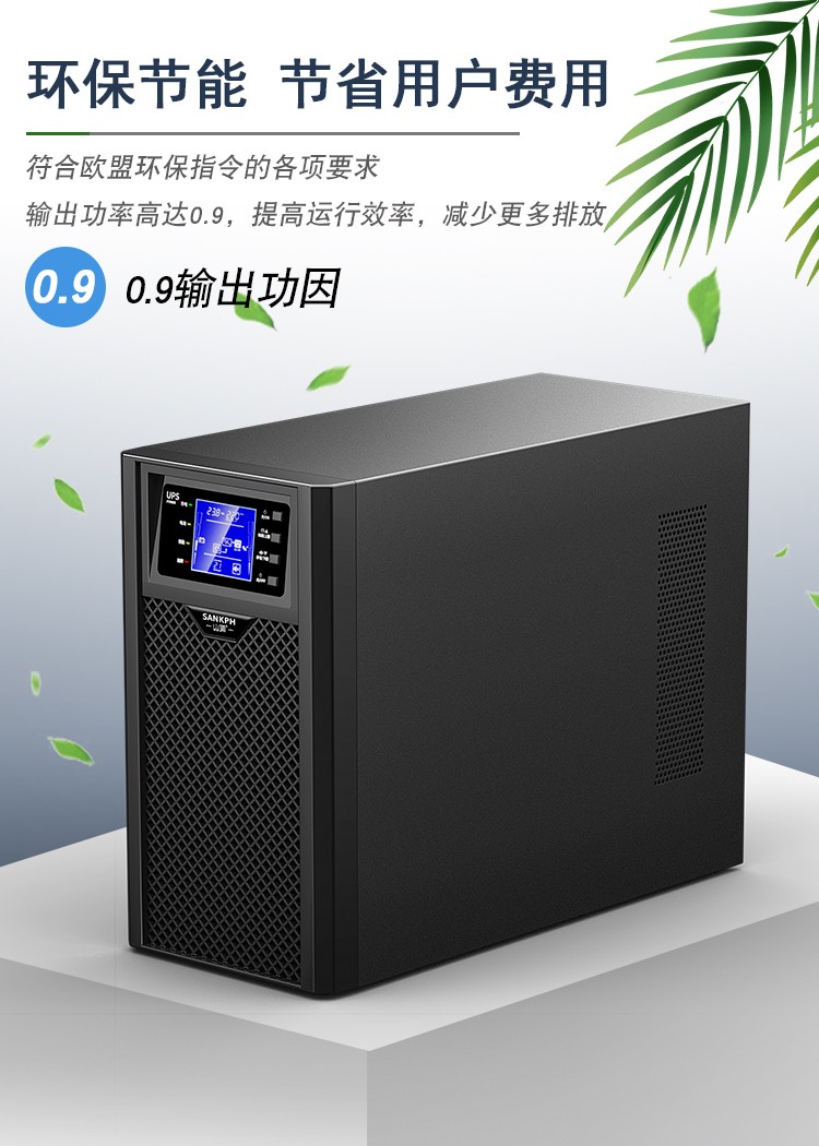 3.適應(yīng)各種電網(wǎng)環(huán)、輸出功因0.8,適合負(fù)載的發(fā)展趨勢,實現(xiàn)更強的帶載能力,整機效率高達(dá)90%,降低UPS的電力耗損,節(jié)約客戶的成本。