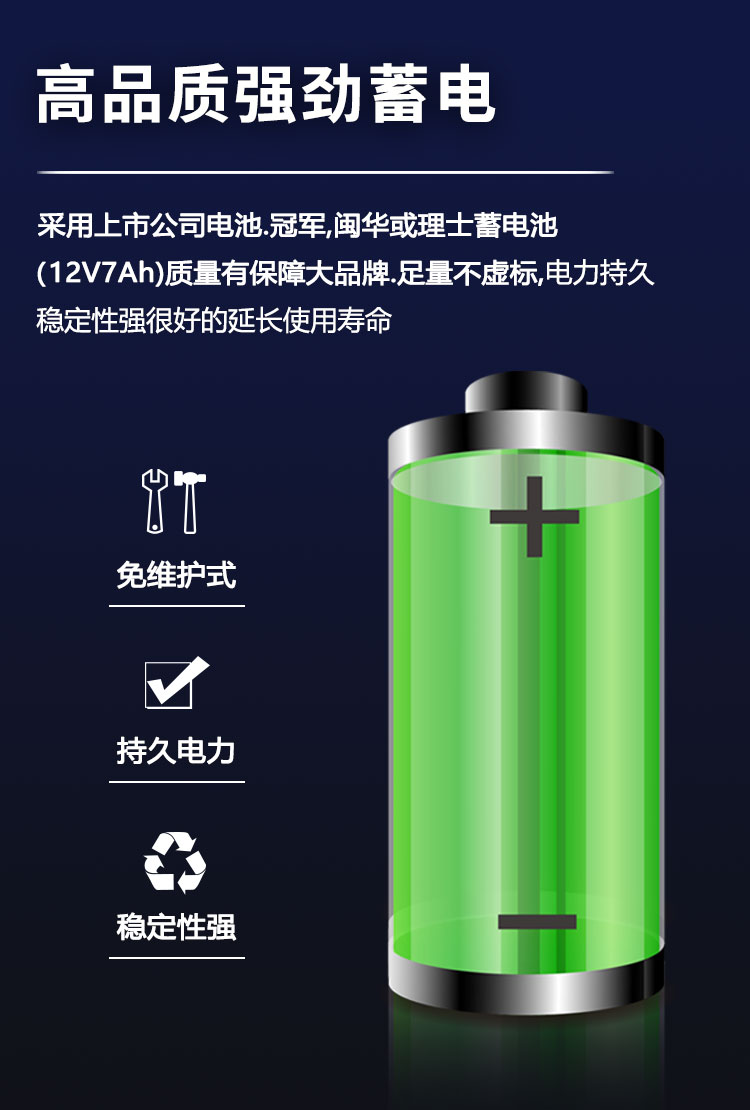 6.智能管理、采用先進的智能化充電控制方式,根據(jù)電池類型和電池和使用狀態(tài)來選擇最優(yōu)充電方式。確保電池的使用壽命得以延長。并定期對電池做充放電管