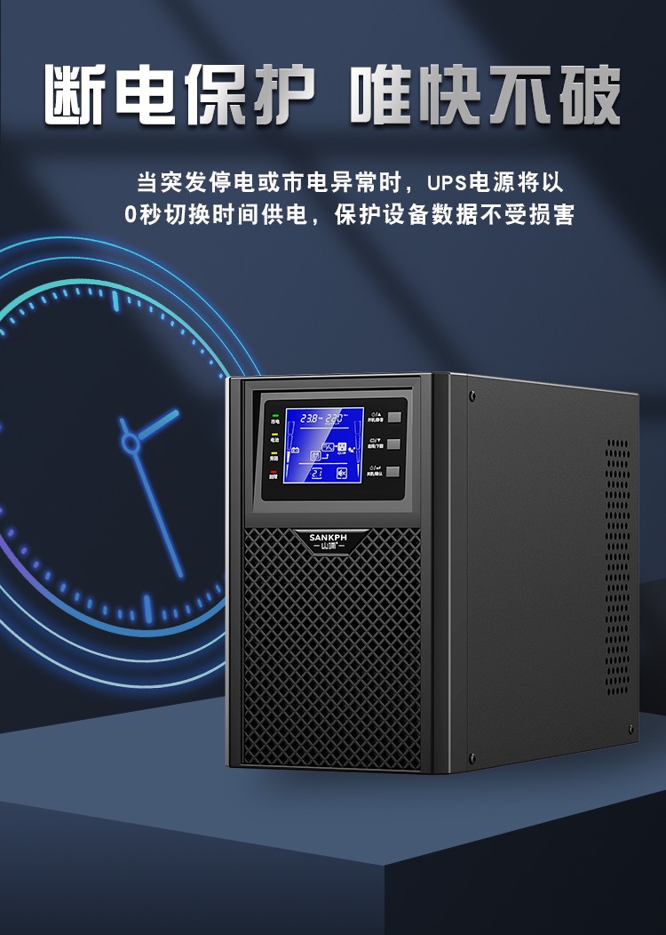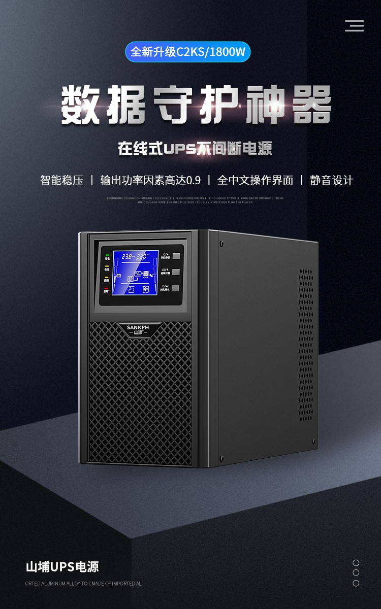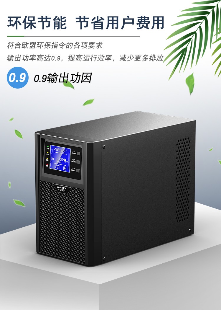 3.適應各種電網(wǎng)環(huán)、輸出功因0.8,適合負載的發(fā)展趨勢,實現(xiàn)更強的帶載能力,整機效率高達90%,降低UPS的電力耗損,節(jié)約客戶的成本。