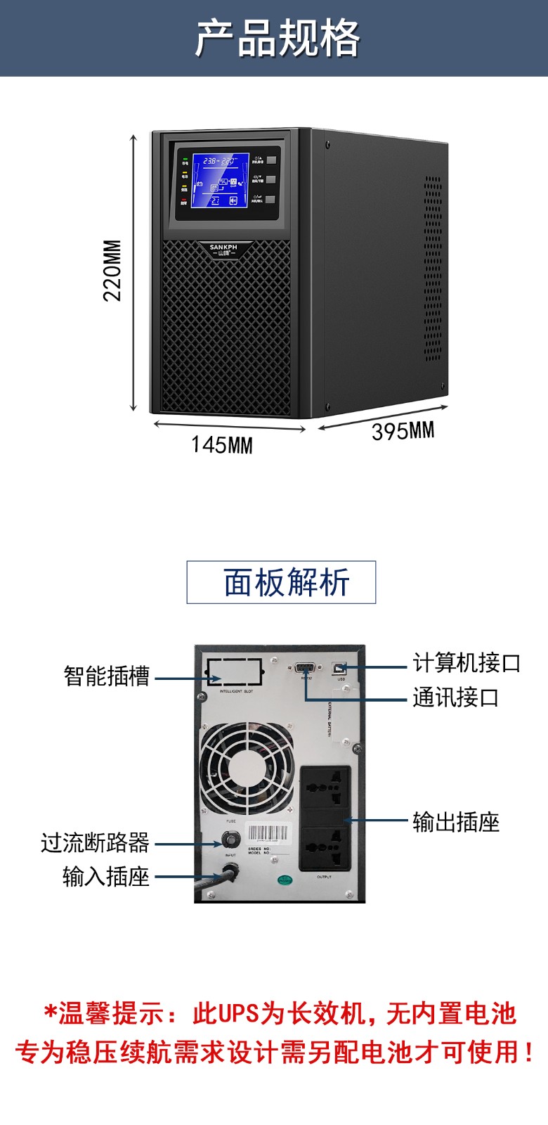 【輸入電壓范圍】:120V-275V (超出此范圍將啟動電池供電)